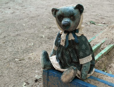 Большая трогательная медведица из старинного голубого плюша. Возможно, когда-то, она была няней и пестовала маленького мальчика или девочку, играла с ним и переживала за него...
